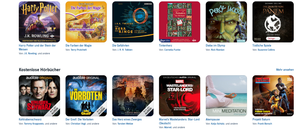 Auf der Plattform von Audible erwartet Besucher eine sehr große Auswahl an Inhalten aus nahezu allen denkbaren Genres. Von spannenden Krimis und Thrillern über Fantasy-Welten, Liebesromane und Biografien bis hin zu Sachbüchern, Ratgebern und Kinderhörbüchern ist alles vertreten. Darüber hinaus bietet Audible eine stetig wachsende Auswahl an Podcasts und exklusiven Audio-Serien, die speziell für das Hören konzipiert wurden. Viele dieser Inhalte sind nur dort verfügbar und verleihen dem Angebot einen klaren Mehrwert. Die übersichtliche Struktur, persönliche Empfehlungen und redaktionell ausgewählte Highlights helfen dabei, auch in einem umfangreichen Katalog schnell passende Titel zu finden.