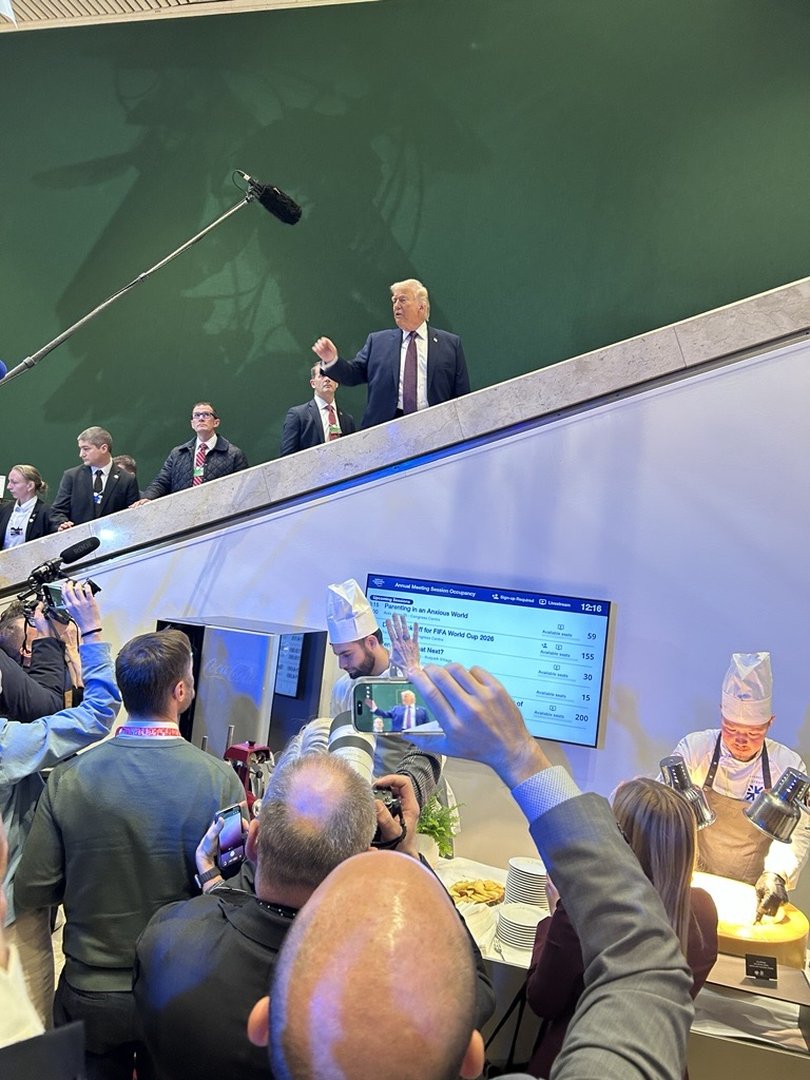 Donald Trump verlässt die Bühne in Davos und geht dabei an den Reportern vorbei. „Ein großer Tag“, sagt er.