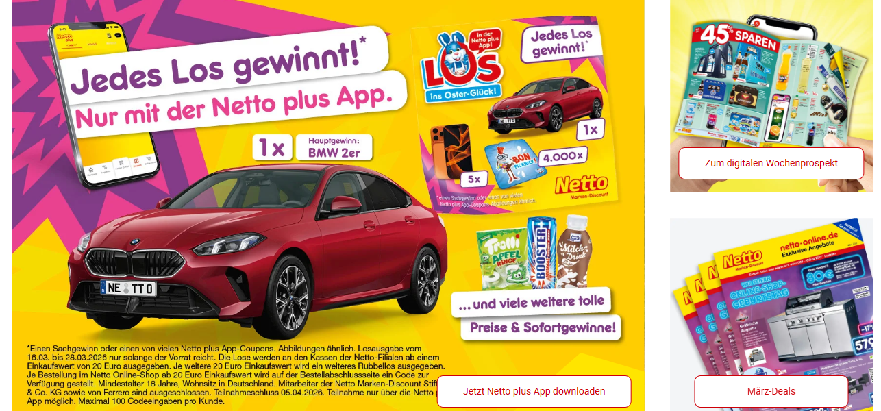 Ein weiteres Highlight der Website ist die Möglichkeit, Sonderaktionen und Rabatte zu entdecken. Netto-Online bietet regelmäßig günstige Angebote, mit denen Kunden ihre Einkäufe noch günstiger gestalten können. Ob saisonale Rabatte, Wochenangebote oder Sonderaktionen – durch die klar strukturierten Angebote finden Käufer schnell gute Schnäppchen.